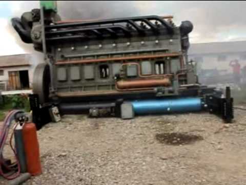 Giant diesel generator startup Antique engine Duvant 9VOS - Moteur Duvant Wikipedia - Giant diesel generator engine was from the Auteuil racecourse "hippodrome" (france) Moteur Duvant turbo diesel 9VOS 1600CV, 330 ltr, 34 tonnes, 9 cylinders, ...